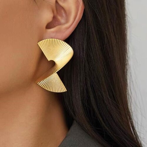 Orecchini di bigiotteria. Orecchini acciaio inossidabile con perno anallergico , vortice rigato lunghezza 4 cm