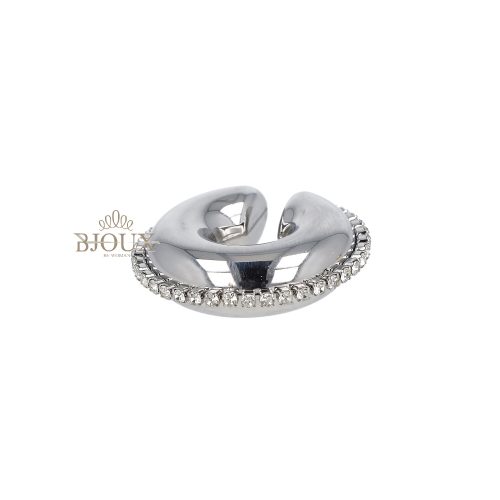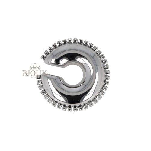 Orecchino earcuff senza buco in acciaio inossidabile diametro 27 mm bombato con decoro di strass