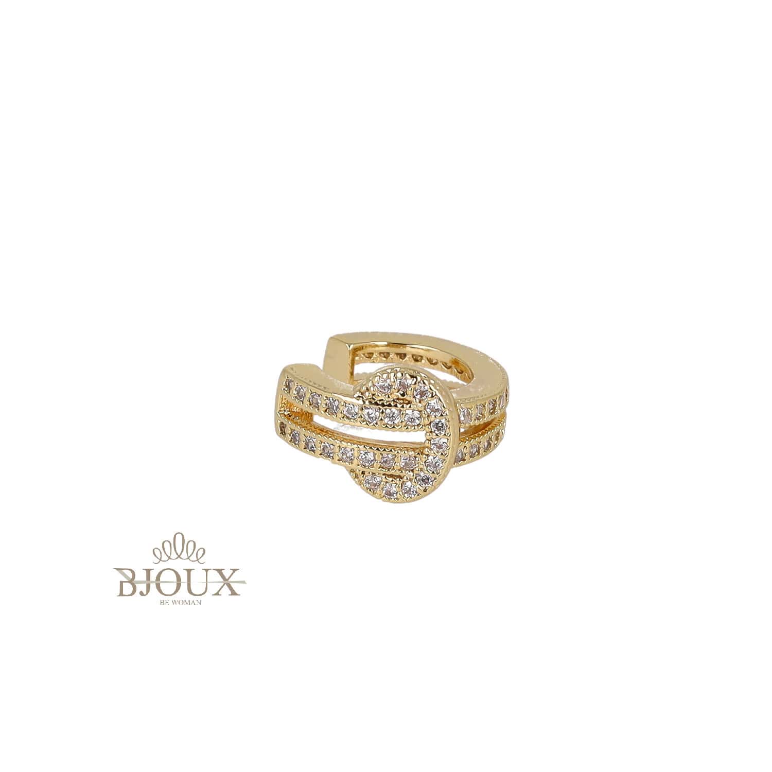 Mono orecchino bijoux in ottone dipinto anallergico, per orecchio senza buco. Fascia con tondo decorato da micro cristalli , h. 1 cm