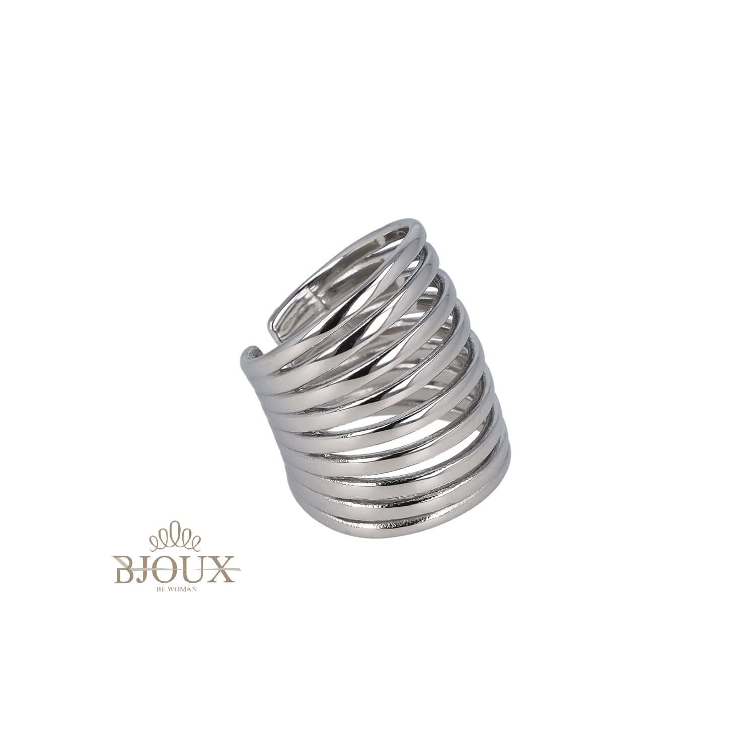Earcuff singolo di bigiotteria in acciaio multi bande che aderisce perfettamente all’orecchio. Lungh. totale 2,5 cm senza buco. In oro o in argento