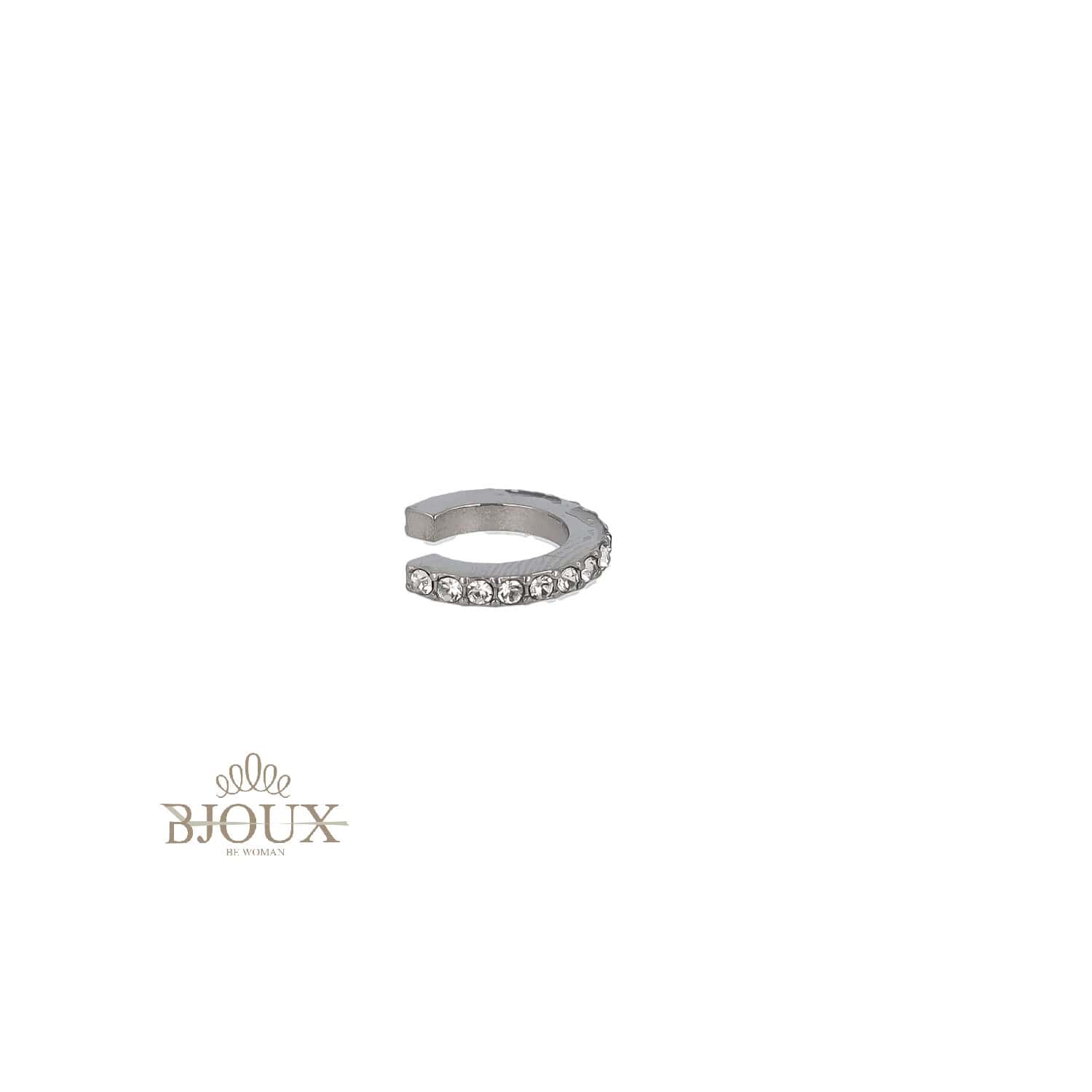 Earcuff in acciaio con fila lineare di strass bianchi. Perfetto per dare un tocco di luce al look.