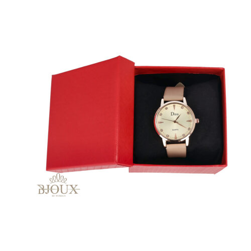 Orologio donna con cinturino ecopelleย quadrante in ottone dorato , con cornice liscia con punti luce nel quadrante coloratoย , quadrante conย cassa acciaio da 3 cm