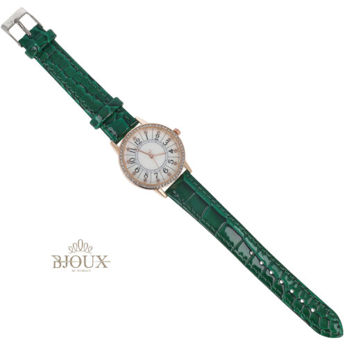 Orologio donna con cinturino ecopelle colorata e quadrante in ottone dipinto , cassa acciaio rotonda 3,5 cm, quadrante decorato da strass kry