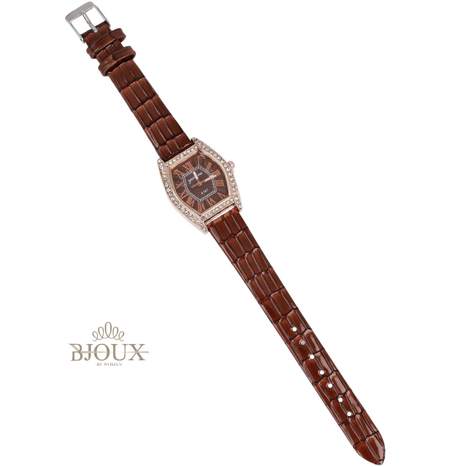 Orologio donna con cinturino ecopelle quadrante esagonale in ottone dorato con punti luce , quadrante con cassa acciaio da 3 cm circa