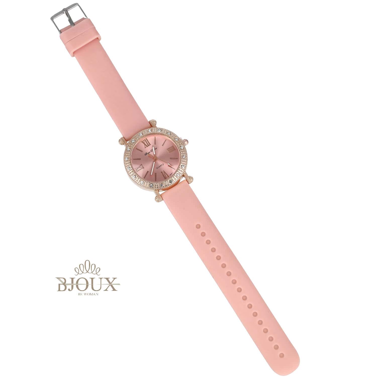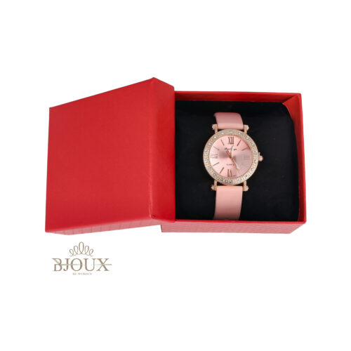 Orologio donna con cinturino ecopelle quadrante in ottone dorato , tonda con strass , quadrante conย cassa acciaio da 3,5 cm con numeri romani