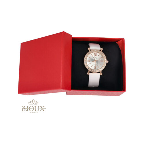 Orologio donna con cinturino ecopelle quadrante in ottone dorato , tonda con strass , quadrante conย cassa acciaio da 3,5 cm con numeri romani