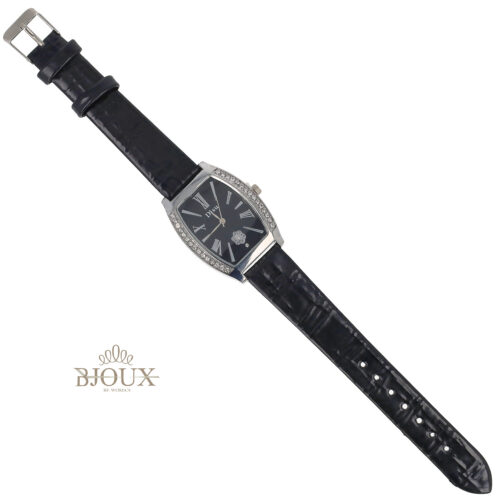 Orologio donna con cinturino ecopelle nere e quadrante in ottone dipinto , cassa acciaio da 3 cm, quadrante decorato da strass kry
