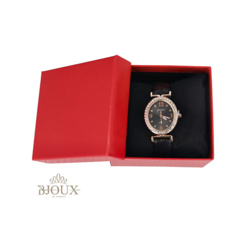 Orologio donna con cinturino ecopelle quadrante in ottone dorato , forma ovale con strass , quadrante conย cassa acciaio da 3 cm
