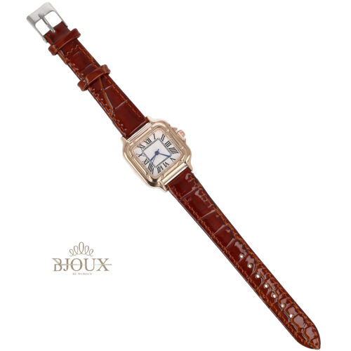 Orologio donna con cinturino ecopelle colorata e quadrante in ottone dipinto , cassa acciaio quadrataย 3 cm, quadrante decorato da strass kry