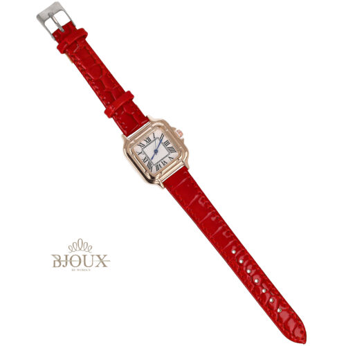 Orologio donna con cinturino ecopelle colorata e quadrante in ottone dipinto , cassa acciaio quadrataย 3 cm, quadrante decorato da strass kry