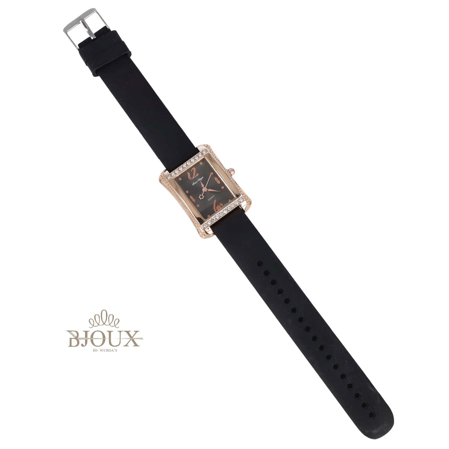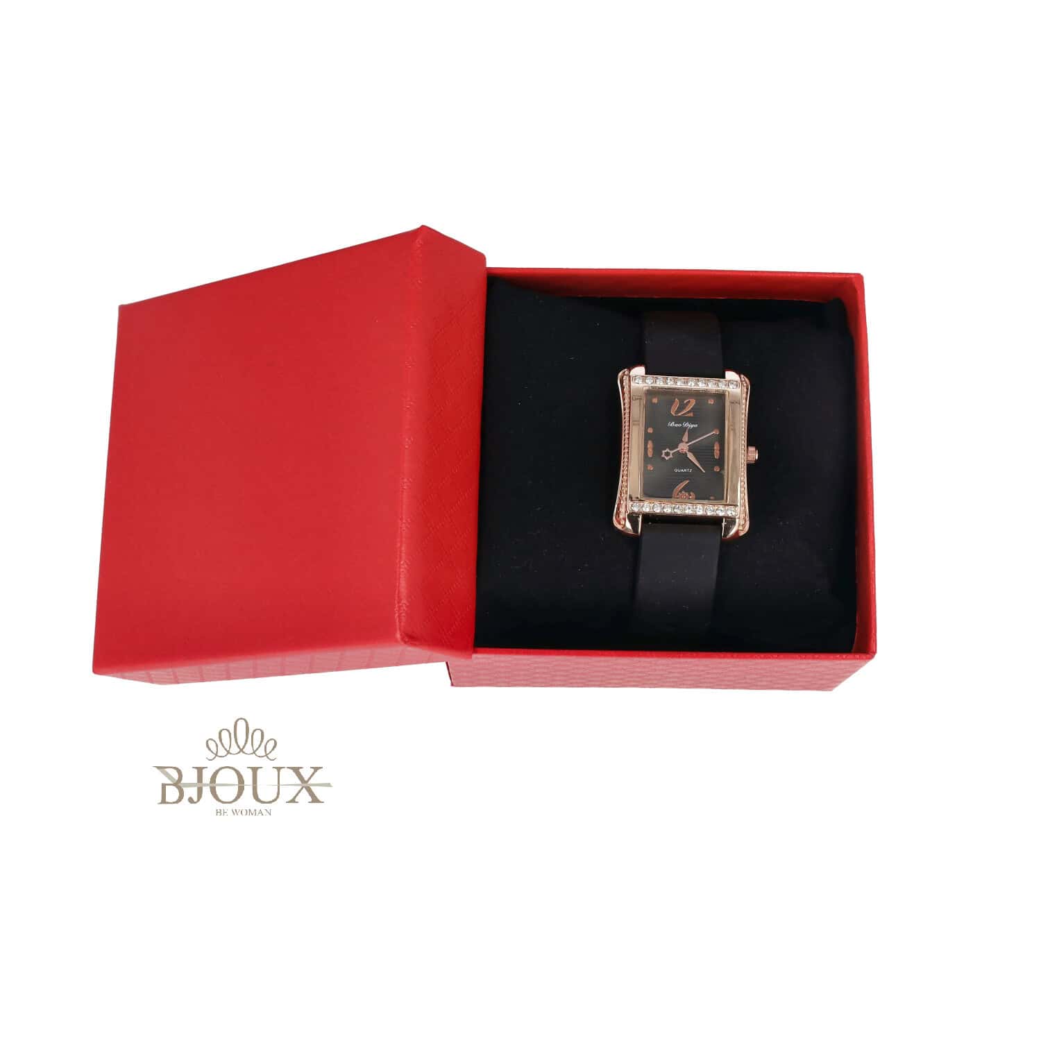 Orologio donna con cinturino ecopelle quadrante in ottone dorato , forma rettangolare bombata con strass , quadrante conย cassa acciaio da 3×2,5 cm