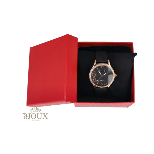 Orologio donna con cinturino ecopelleย quadrante in ottone dorato , con cornice a cordaย , quadrante conย cassa acciaio da 3,5 cm