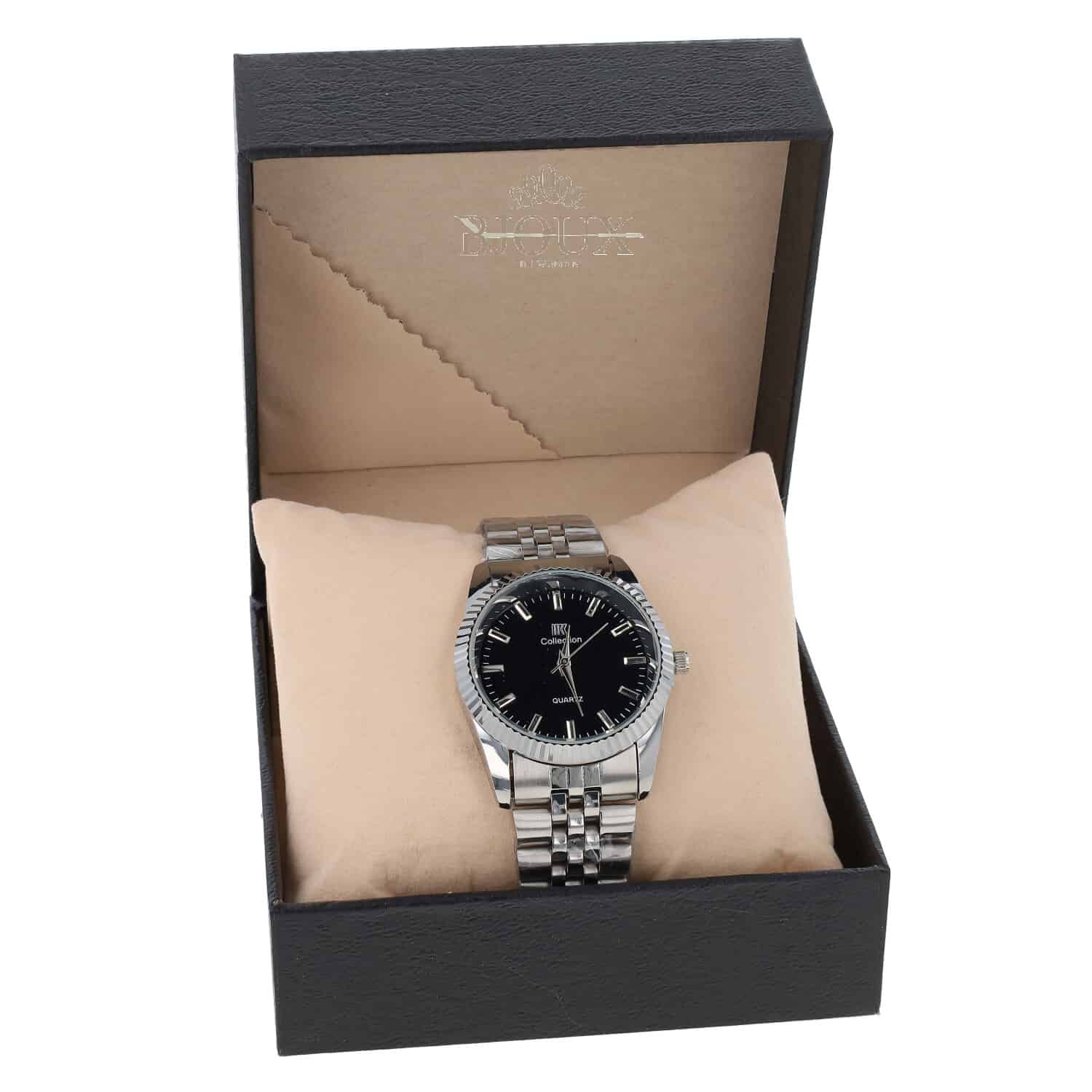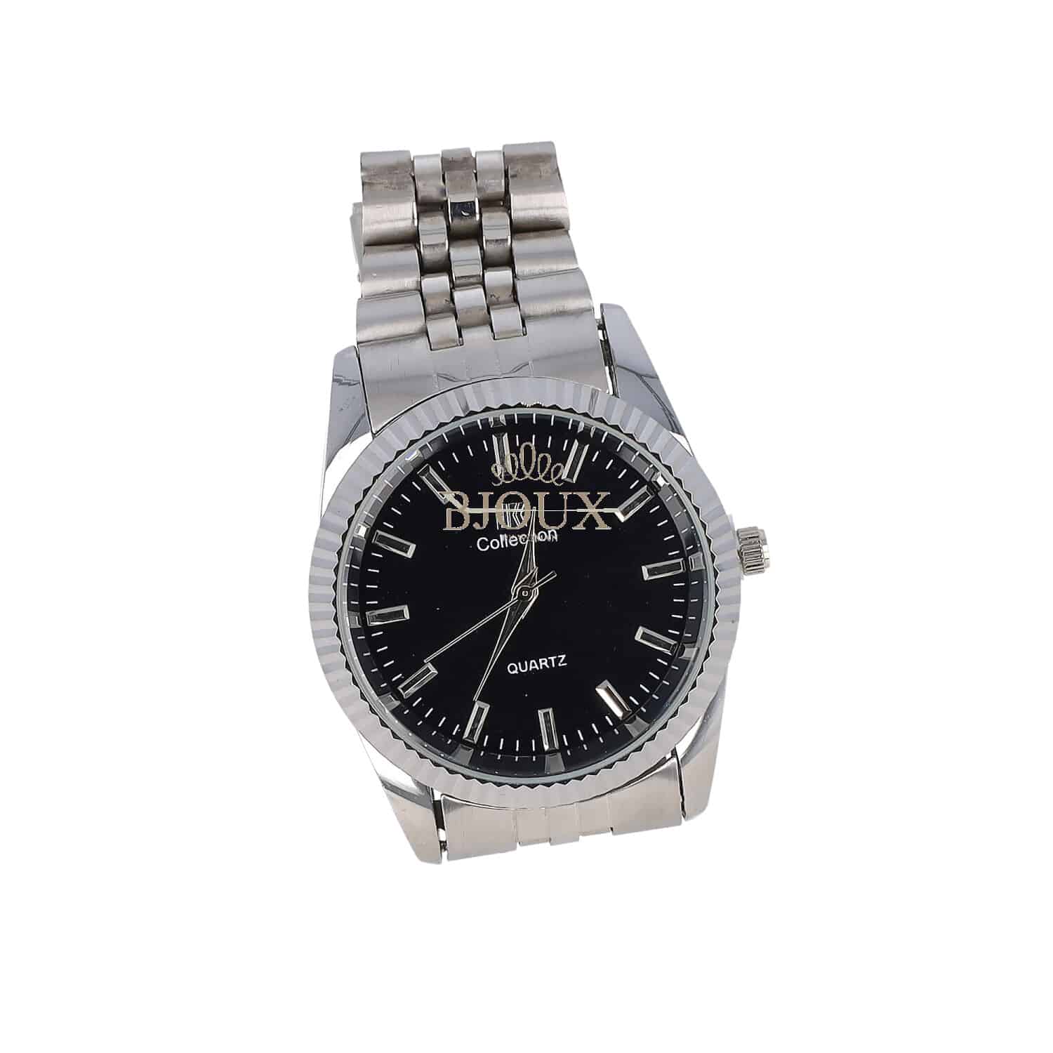 Orologio da uomo con cinturino in acciaio rodiato. Con cassa in acciaio. Quadrante in vetro color nero da 3,5cm.