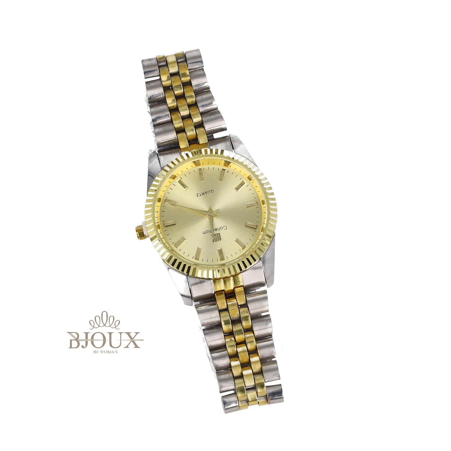 Orologio da uomo con cinturino in acciaio 2 tone. Con cassa in acciaio. Quadrante in vetro color oro da 3,5cm,