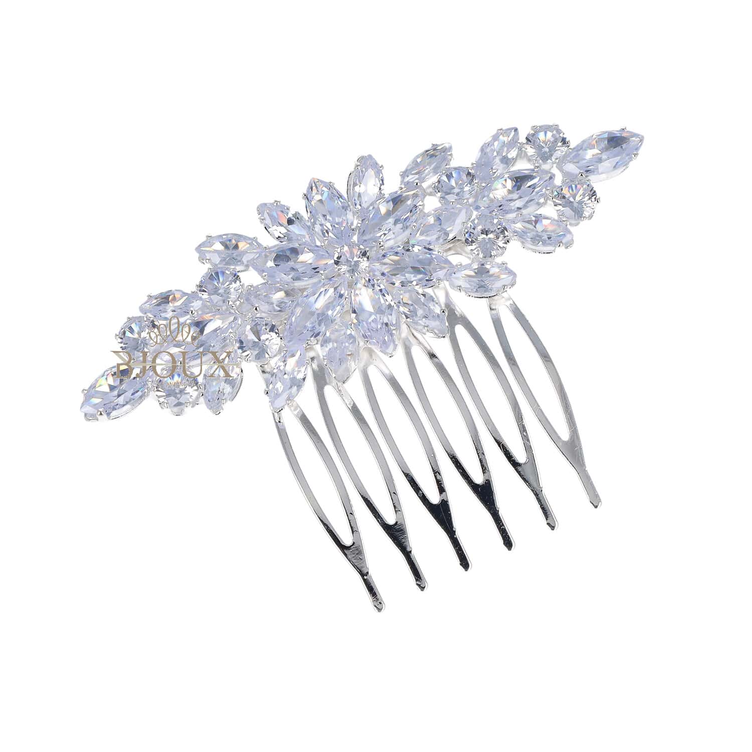 Pettine per capelli in ottone dipinto in oro o in rodio decorato da strass. In due colori