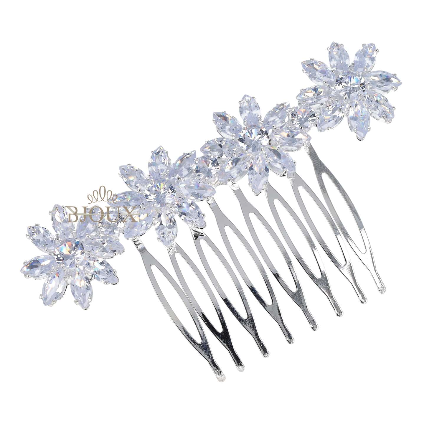 Pettine per capelli in ottone dipinto in oro o in rodio decorato da strass. In due colori