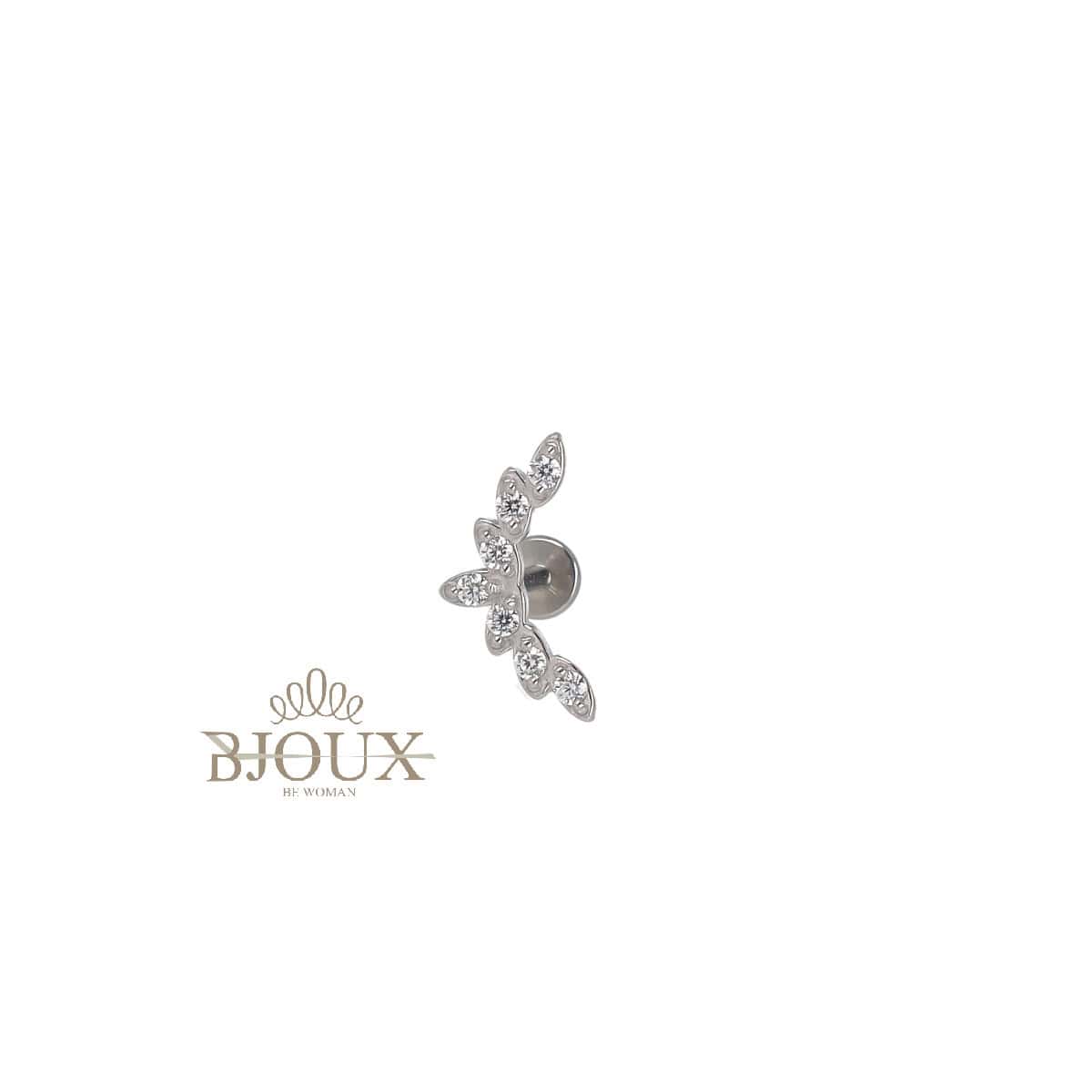 Piercing elegante realizzato in acciaio inox con raffinato design a corona impreziosita da zirconi luminosi.