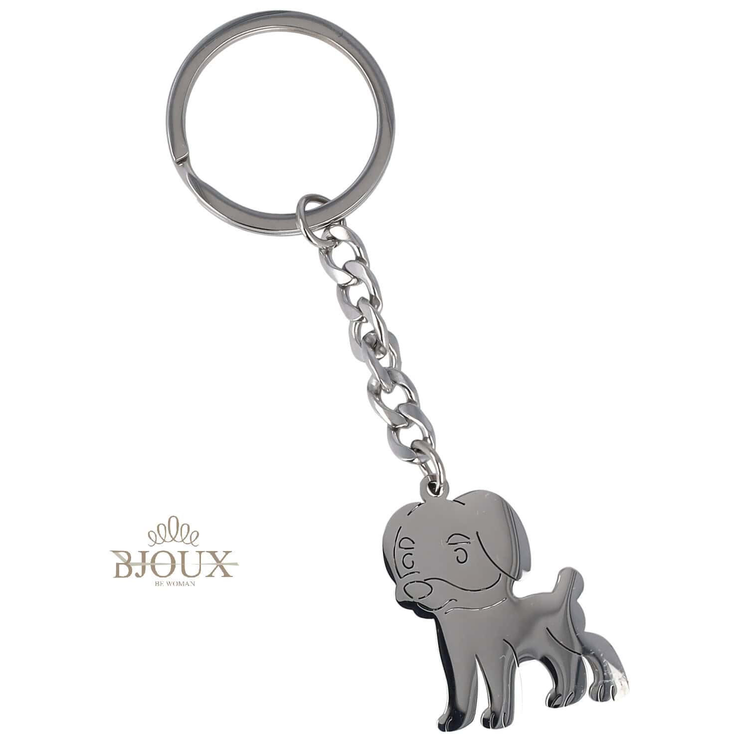 Portachiavi in acciaio inossidabile con rondella con ciondolo cagnolino da 3 cm . Colore rodio