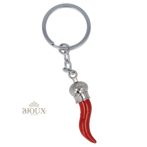 Portachiavi acciaio portafortuna con catenina e con ciondolo corno rosso portafortuna con astuccio rosso 7×7