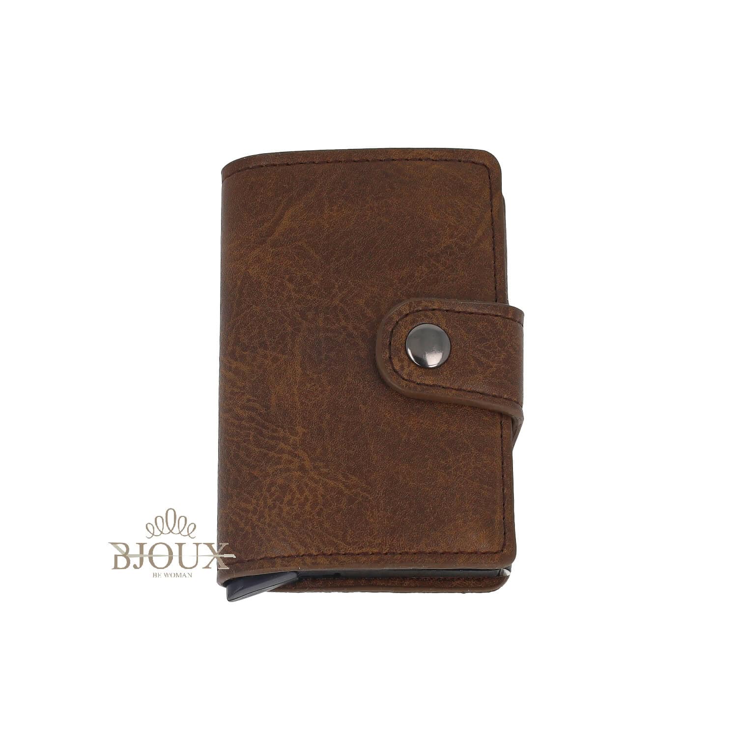 Portacarte/ Porta banconote rigido con custodia in morbida similpelle colore cuoio. Misure 10×6,5×2 cm