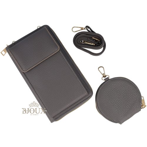 Portafoglio in ecopelle colorata con tracolla, borsellino portamonete e portacellulare. Tutti gli interni sono organizzati in scomparti per monete, carte di credito e banconote. Misure 20x12x4,5