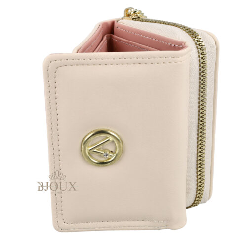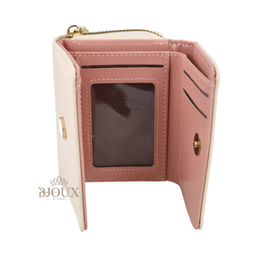 Portafoglio in ecopelle colorata con chiusura a bottone e a zip. Tutti gli interni sono organizzati in scomparti per monete, carte di credito e banconote. Misure 11x8x4