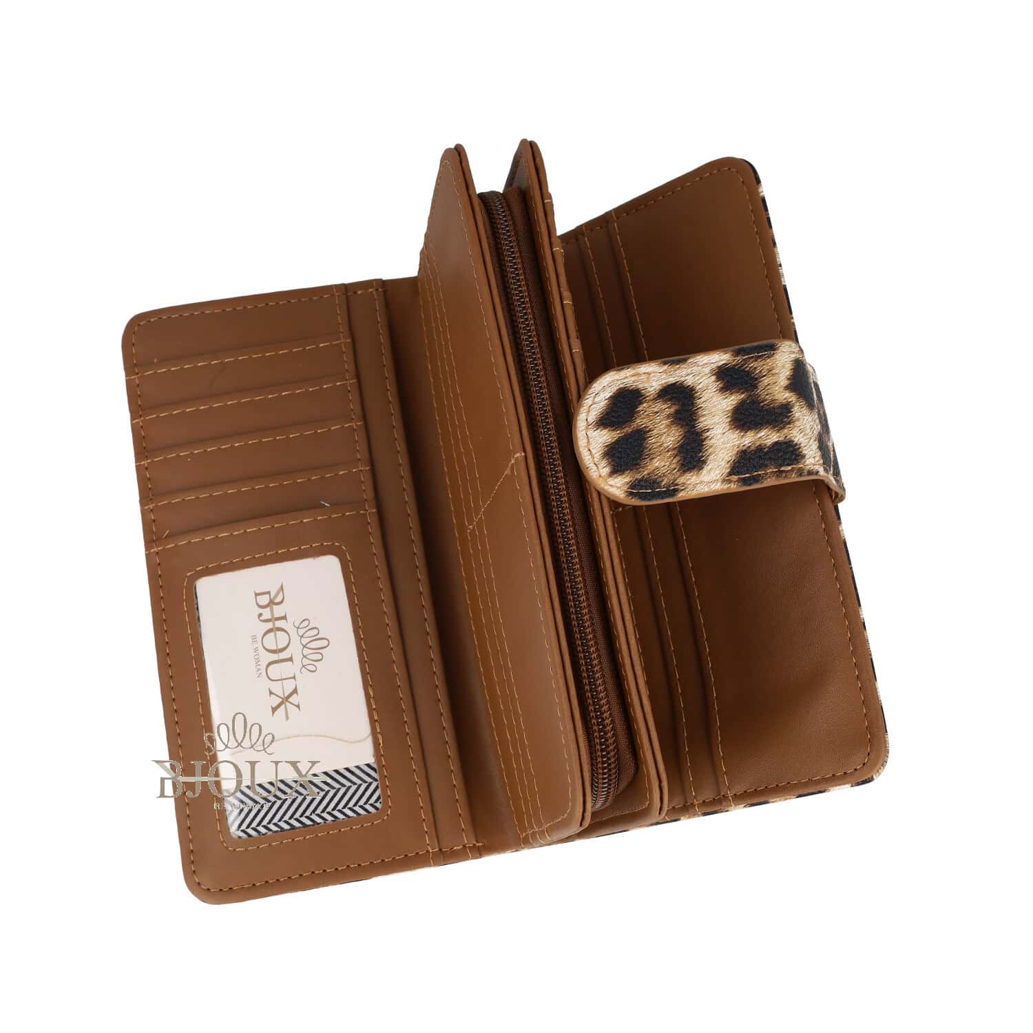 Portafoglio da donna in ecopelle colorata. Tutti gli interni sono organizzati in scomparti per monete, carte di credito e banconote. Misureย 18,5 x 10 x 4 cm