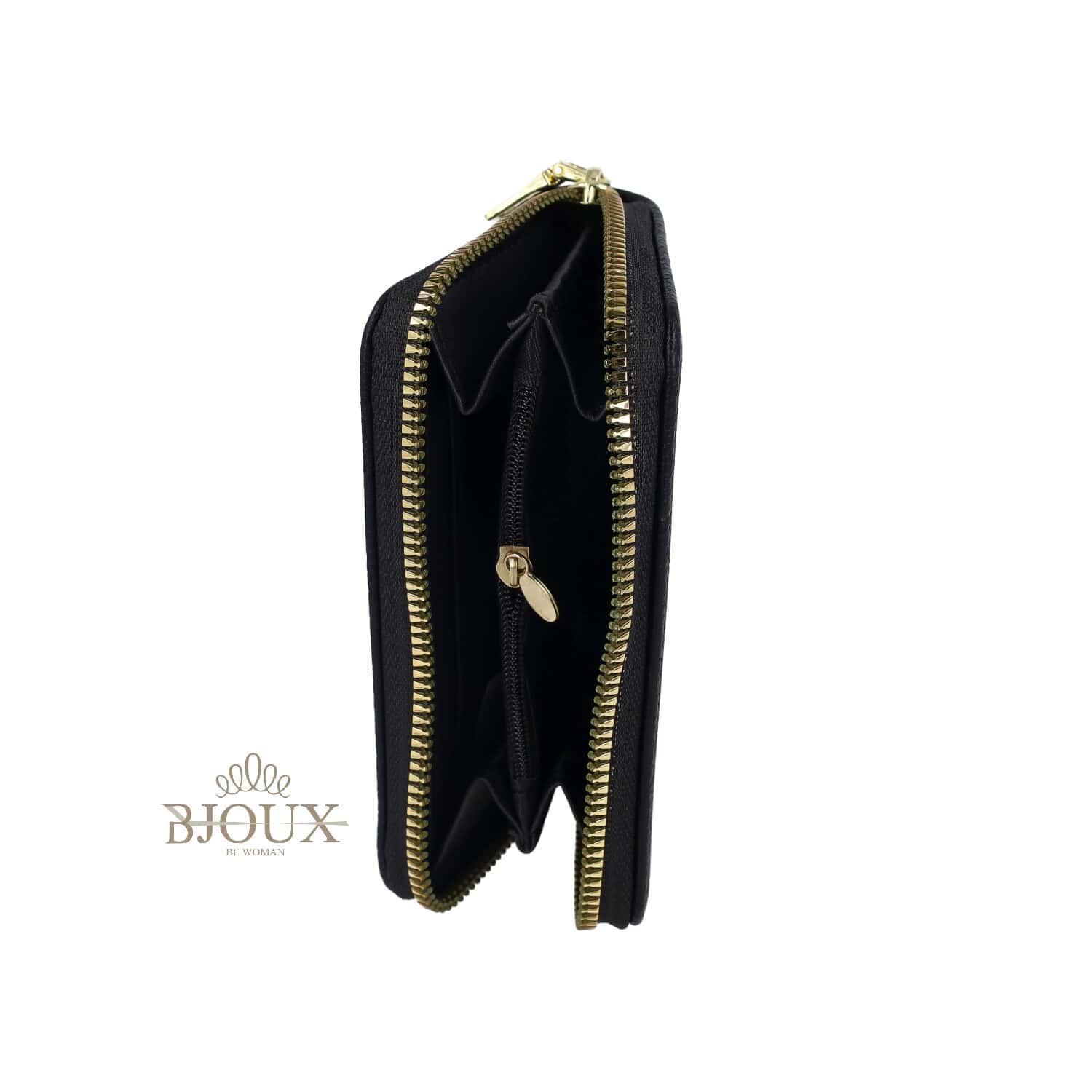 Portafoglio da donna in ecopelle colorata. Tutti gli interni sono organizzati in scomparti per monete, carte di credito e banconote. Misureย 13 x 8 x 2,5 cm