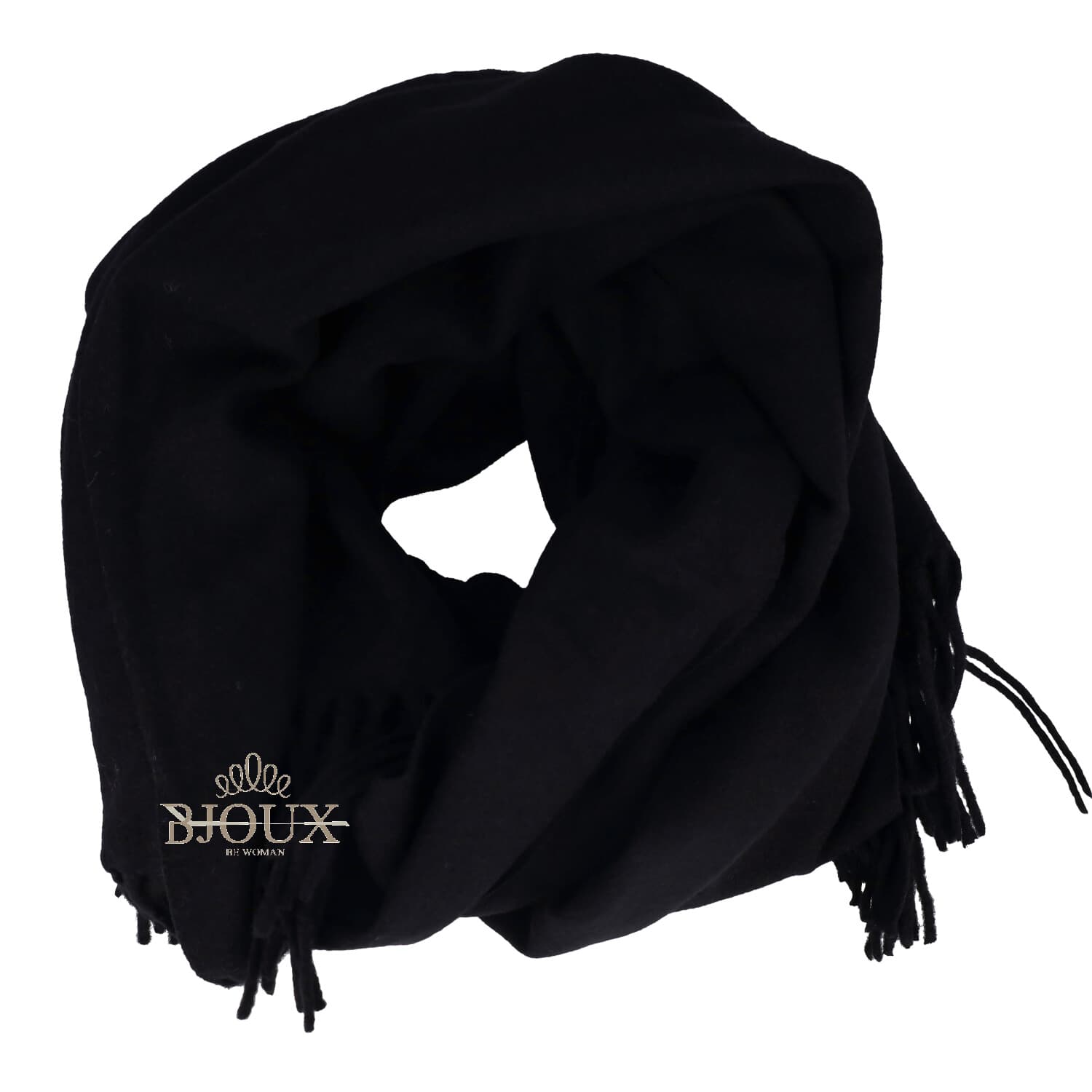 Sciarpa da donna con frange a tinta unita . Misure 180×70ย Composizione 50% viscosa 30% cashmere 20% lana