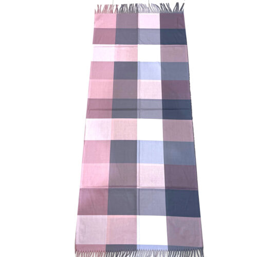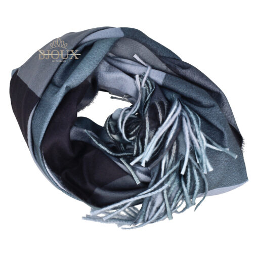 Sciarpa da donna con frange a fantasia quadri. Misure 180×75. Composizione 50% viscosa 30% cashmere 20% lana