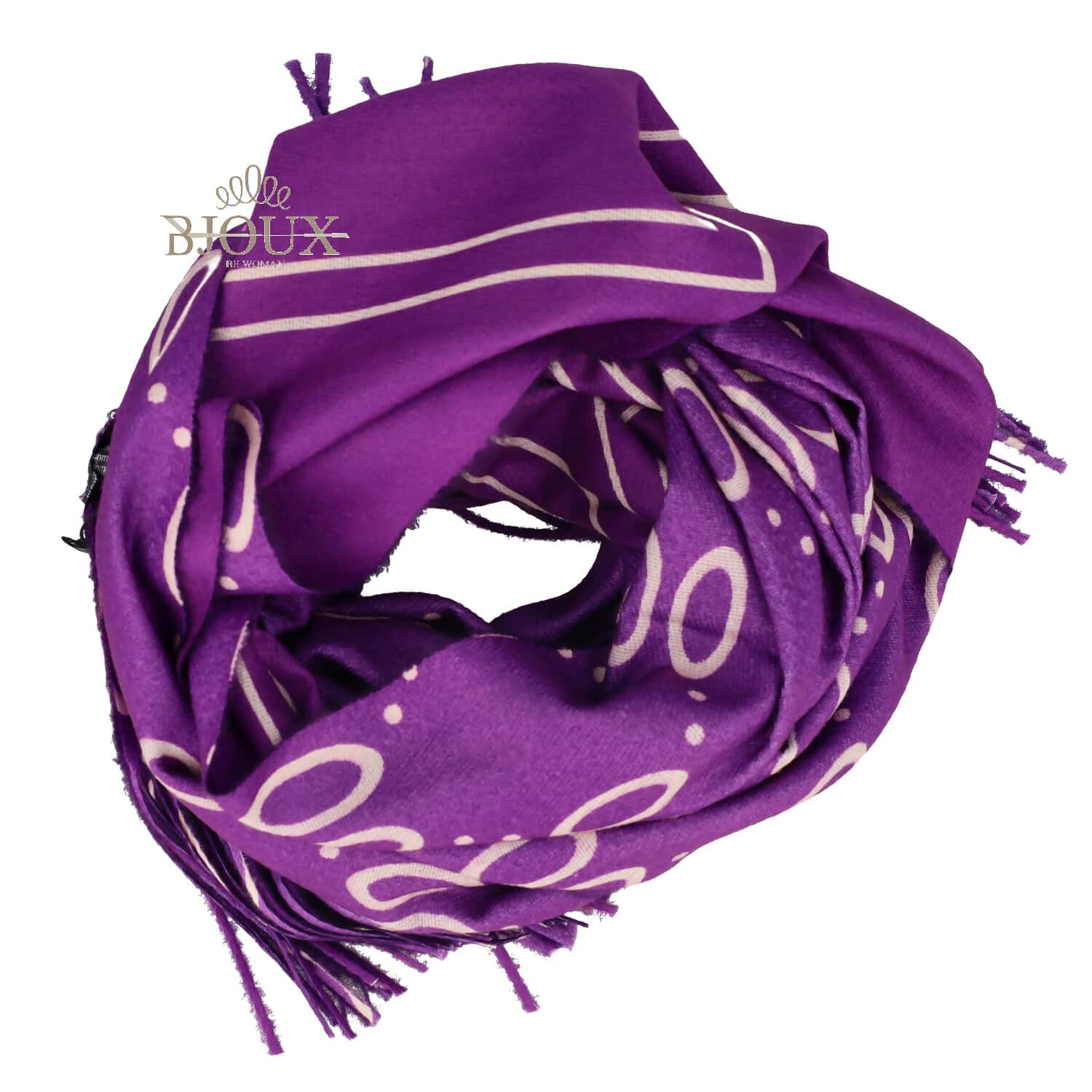 Sciarpa da donna con frange a fantasia double face. Misure 180×75. Composizione 90% cashmere 10% lana