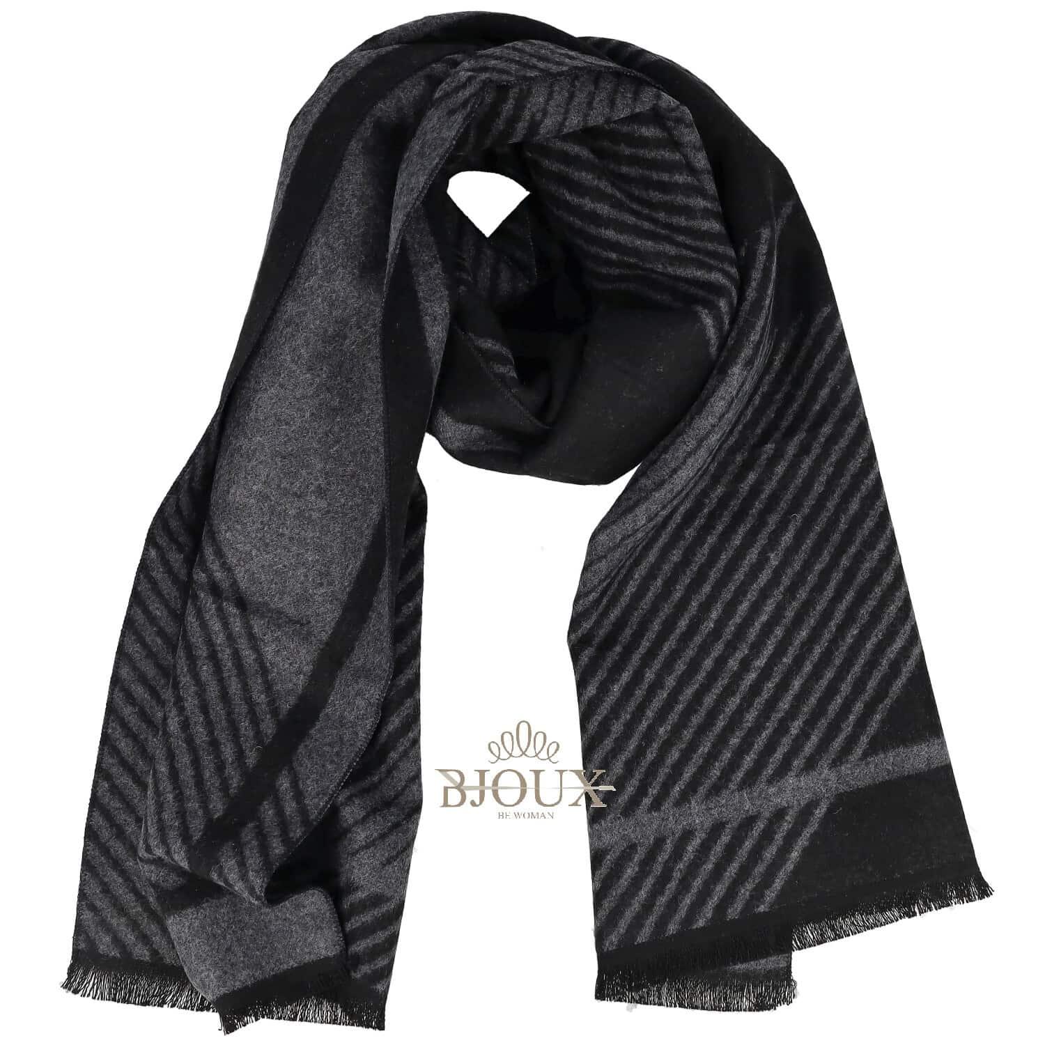 Sciarpa da uomo in cashmere e viscosa fantasia con frange . Fantasia Bicolore a strisce. Misure 32 x 180