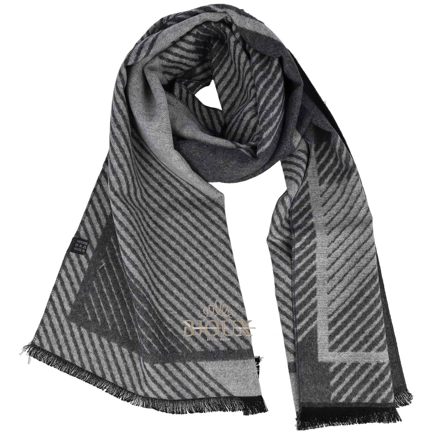 Sciarpa da uomo in cashmere e viscosa fantasia con frange . Fantasia Bicolore a strisce. Misure 32 x 180
