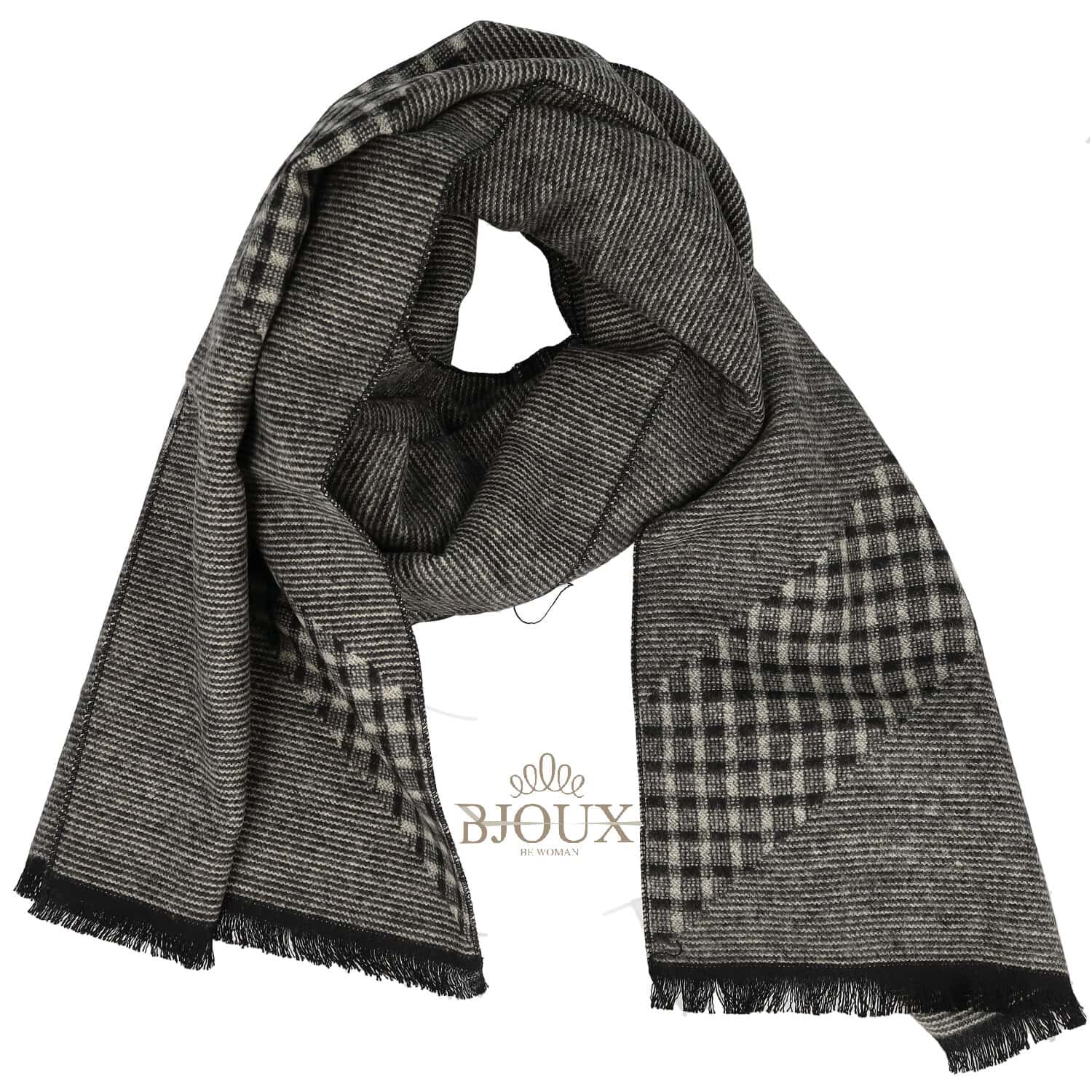 Sciarpa da uomo in cashmere e viscosa fantasia con frange . Fantasia quadri. Misure 32 x 180