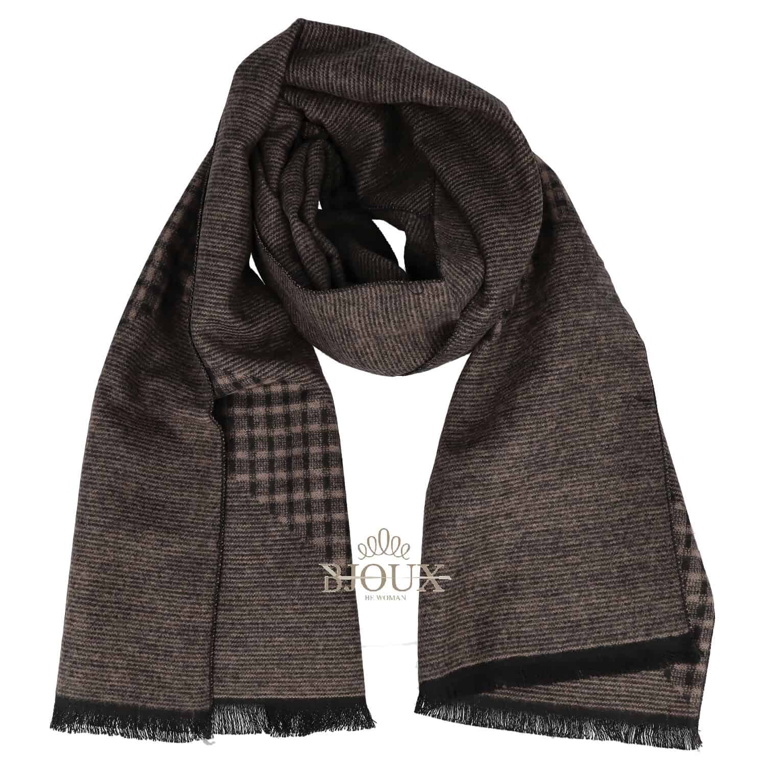 Sciarpa da uomo in cashmere e viscosa fantasia con frange . Fantasia quadri. Misure 32 x 180
