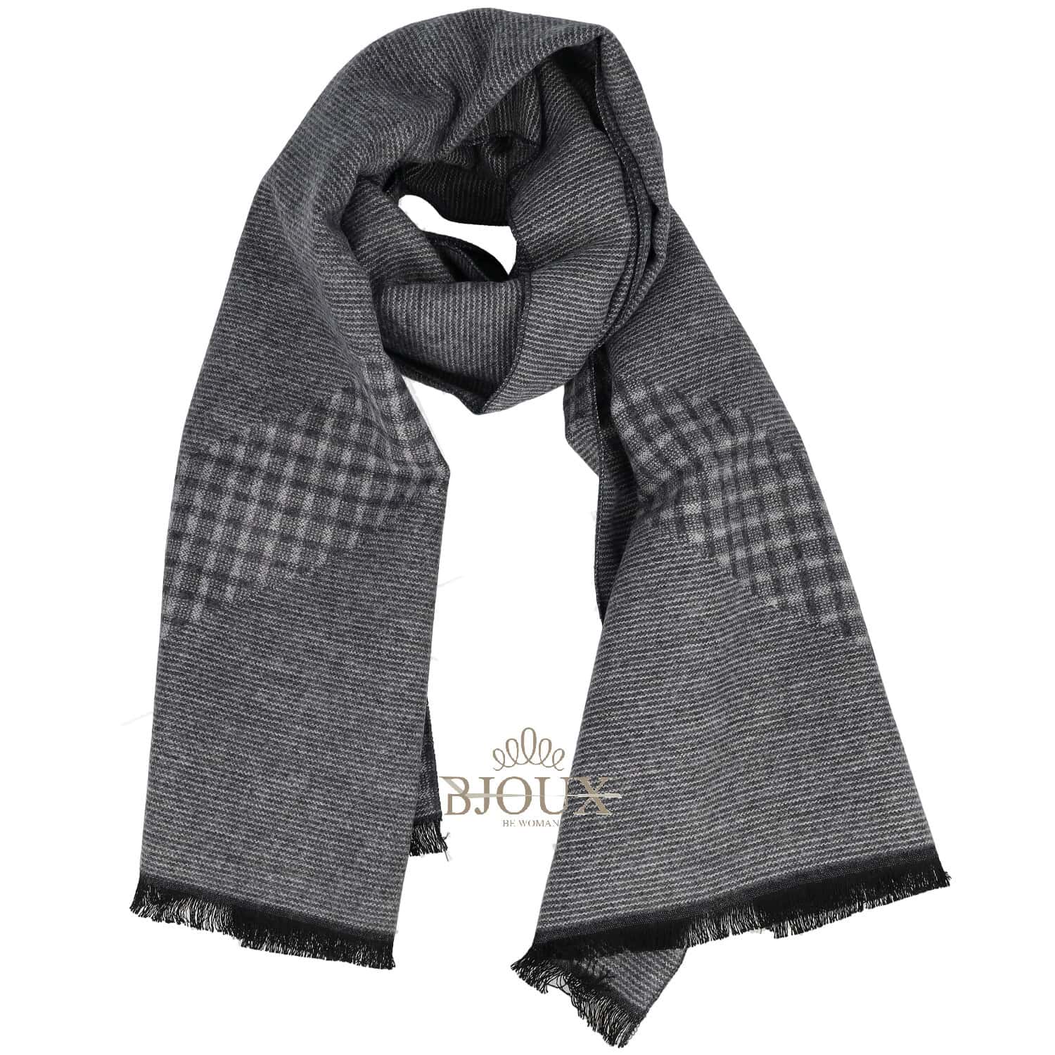 Sciarpa da uomo in cashmere e viscosa fantasia con frange . Fantasia quadri. Misure 32 x 180