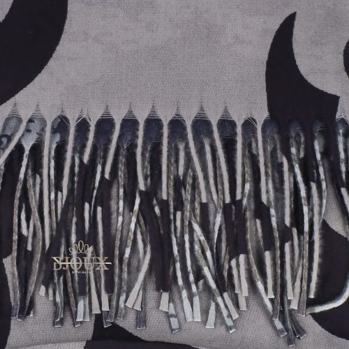 Sciarpa da donna a fantasia . Misure 180×75. Composizioneย 90% cashmere 10% lana con frange