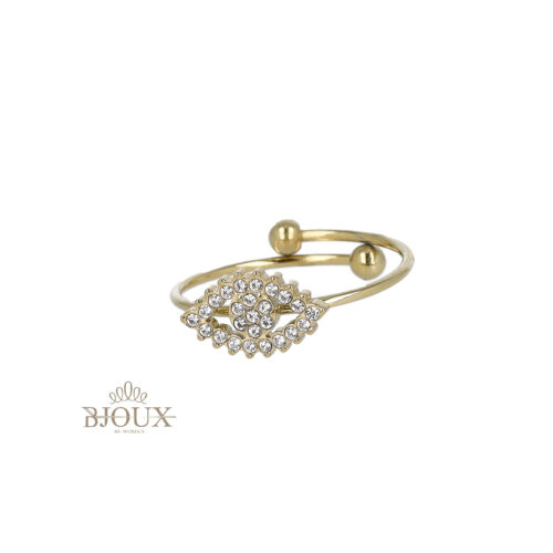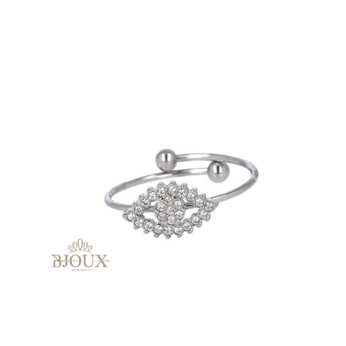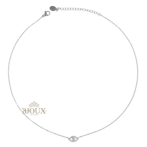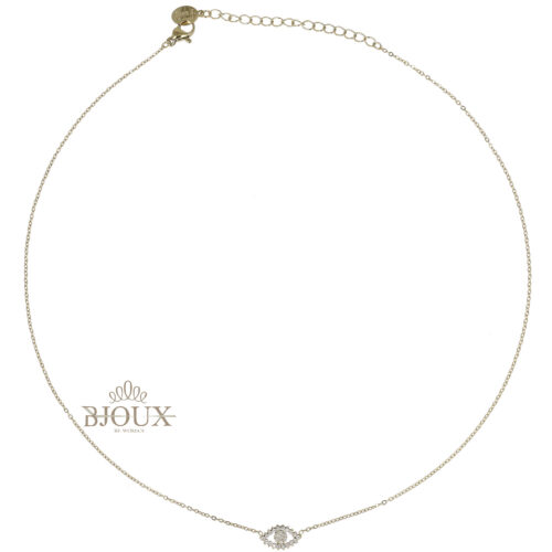 Collana di bigiotteria in acciaio inossidabile catenina 40 + 5 cm con ciondolo occhio strass da 1 cm abbinata all’anello misura regolabile. Astuccio regalo 9X9