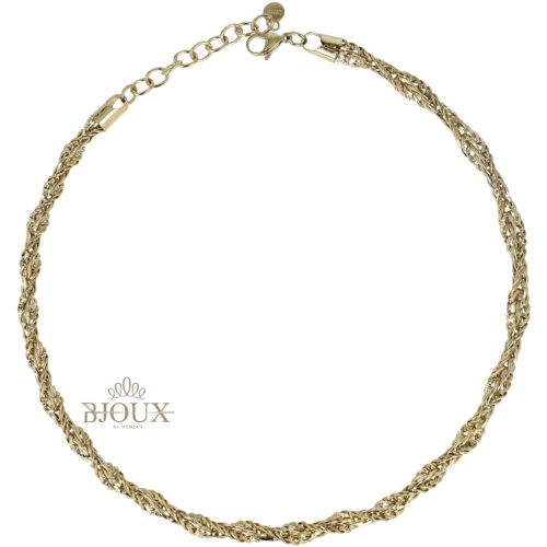 Collana di bigiotteria in acciaio inossidabile catena 40 + 5 cm torchon da 3 mm abbinata al bracciale di bigiotteria in acciaio inossidabile catena da 14 + 3 cm , intreccio. Astuccio regalo 12×16