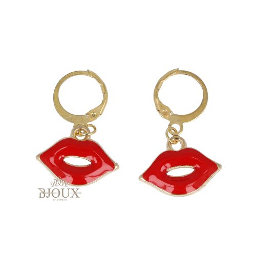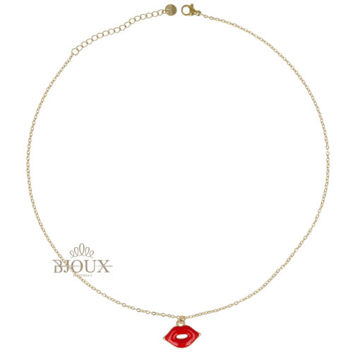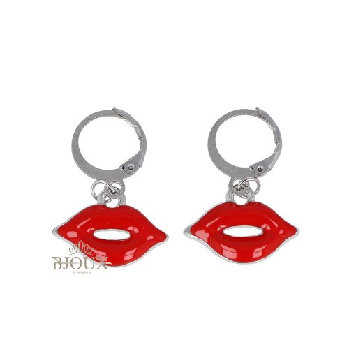 Collana in acciaio inossidabile catenina 40+5 cm con ciondolo bacio smaltato rosso 2 cm abbinata ad orecchini modello a cerchietto da 10 mm con ciondolo bacio smaltato da 1,5 cm. Astuccio regalo 9X9