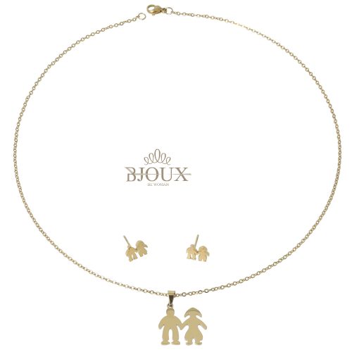 Collana e orecchini in acciaio inossidabile color oro o rodio con ciondolo friends. In astuccio regalo 7×9