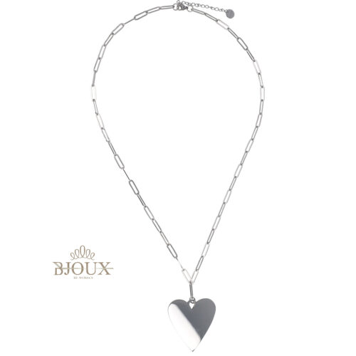 Collana in acciaio inossidabile catenina da 55 cm con estensione cm con ciondolo a forma di cuore maxi 4×4 cm abbinata ad orecchini con doppio cuore , lunghezza 4,5 x larghezza 2,5 cm. Astuccio regalo 9×9
