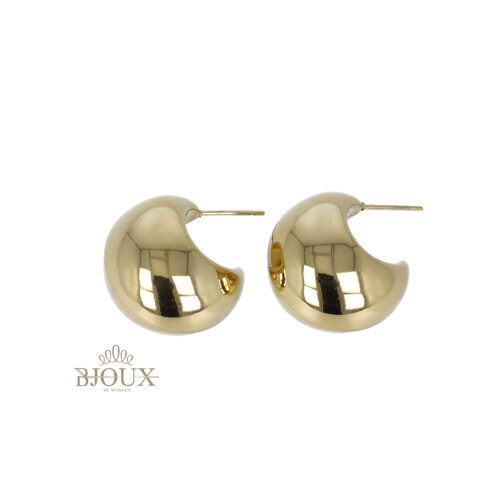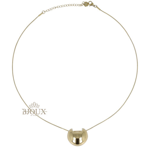 Collana di bigiotteria in acciaio inossidabile, catena coda di topo con estensione, centrale mezzaluna bombata da 2 cm abbinata ad orecchini acciaio inossidabile con perno anallergico, goccia mezzaluna specchiato bombato 2 cm. Astuccio regalo 9X9