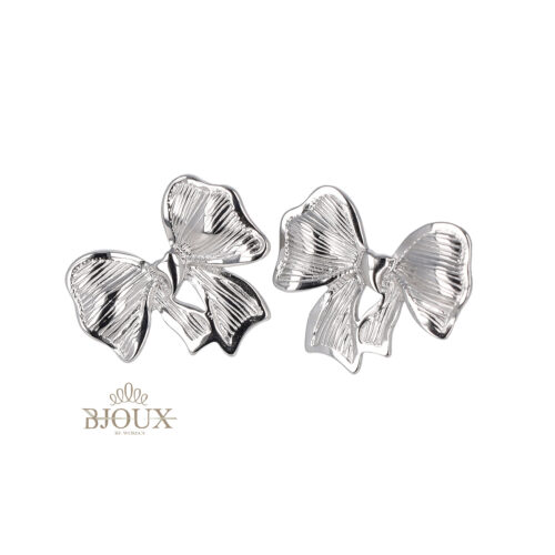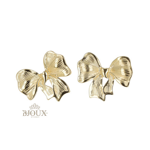 Orecchini da donna in acciaio inox con perno fiocco rigato 2,3×2 cm. Colore oro o rodio abbinati all’anello a misura regolabile della stessa serie. Astuccio regalo 9×9