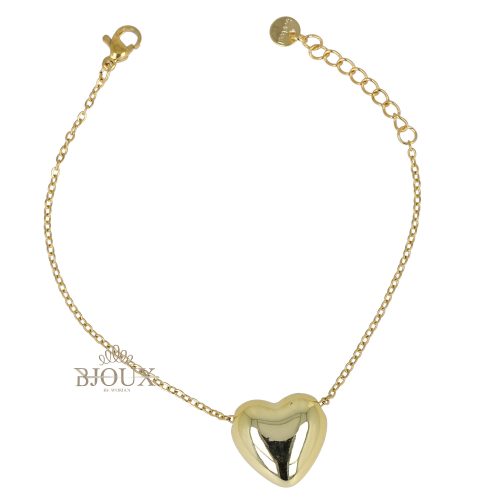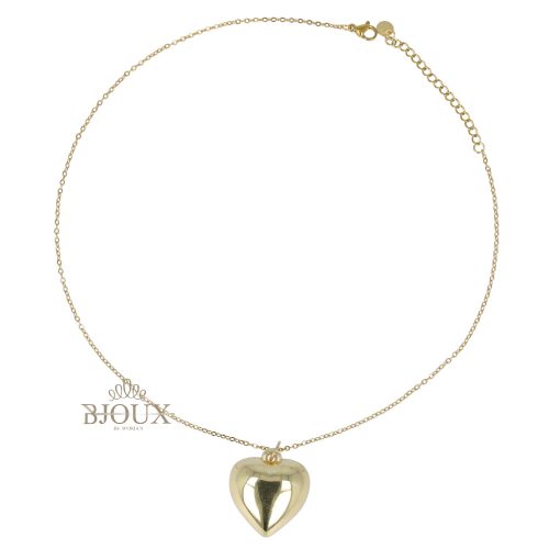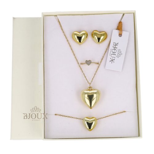 Collana bigiotteria con catenina in acciaio regolabile 42+5 cm , con ciondolo cuore in ottone da 2,5 cm abbinata al bracciale della stessa serie ,orecchini a perno con cuore e anellino cuoricino strass. In astuccio regalo 12×16