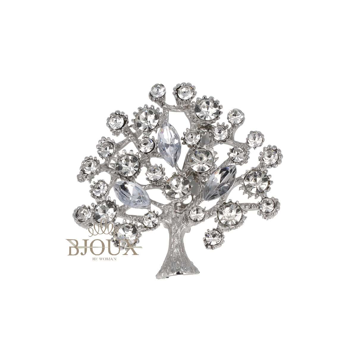 Spilla gioiello in ottone dipinto color oro o color rodio con decoro pietre strass. Misura largh. 4,5 x h. 5 cm