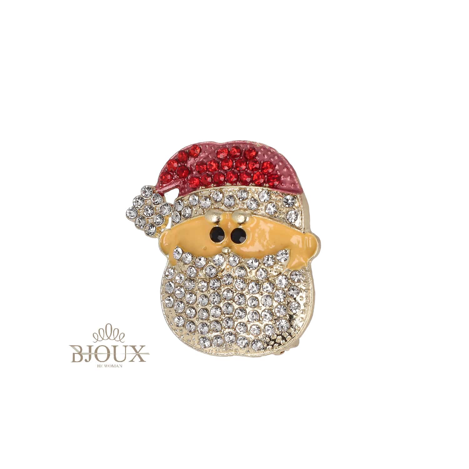 Spilla bigiotteriaย in ottone dorato con soggetti natalizi smaltati e colorati. Base color oro