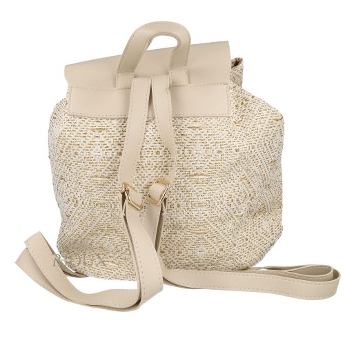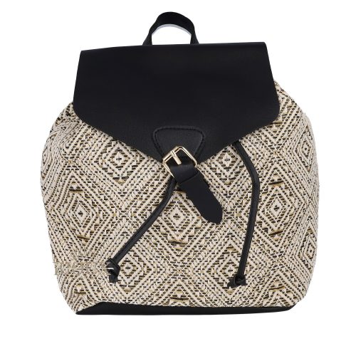Zaino da donna in tessuto lavorato filato con elementi in ecopelle colorata, decorato a fantasia romboidale, misura 26x30x13