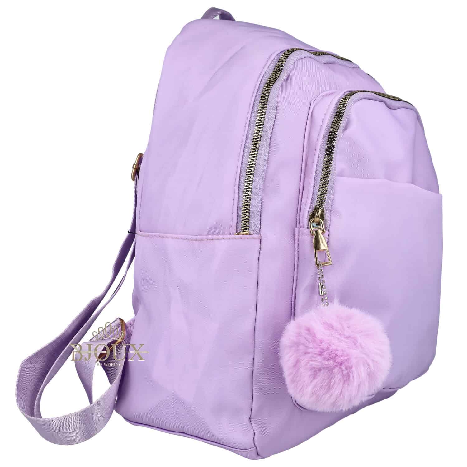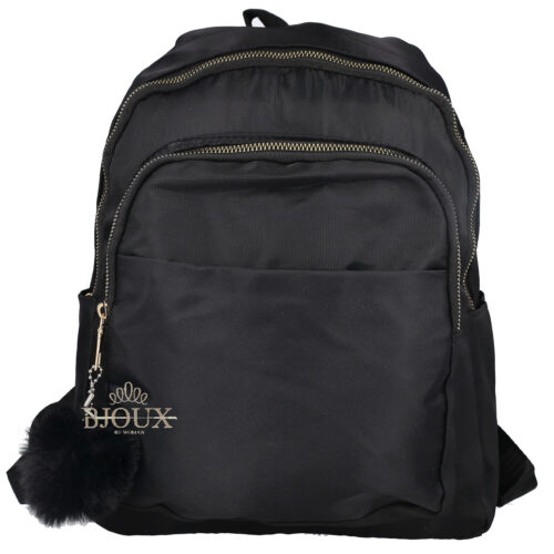 Zaino da donna in tessuto colorato multitasche con pon pon . Tracolle regolabili. Misure 35x27x15