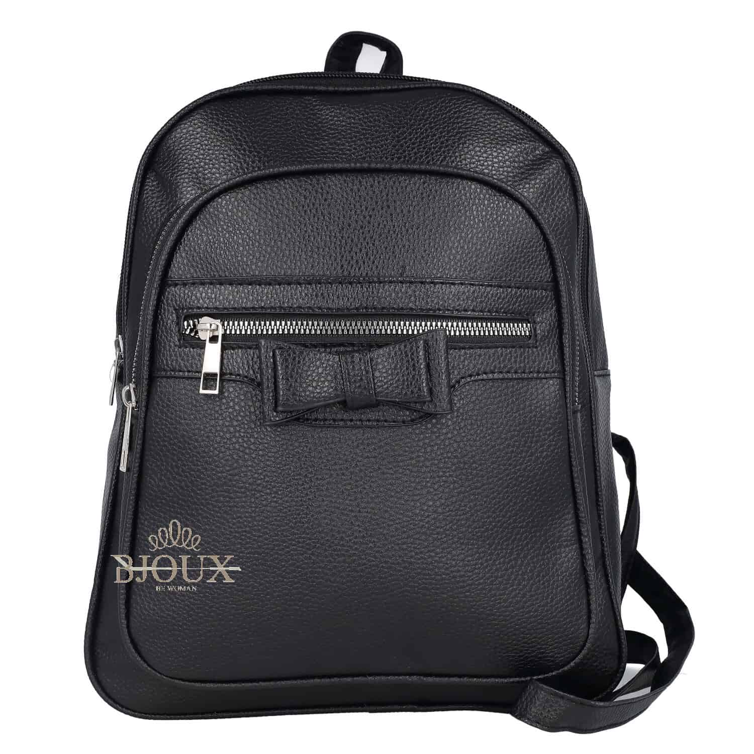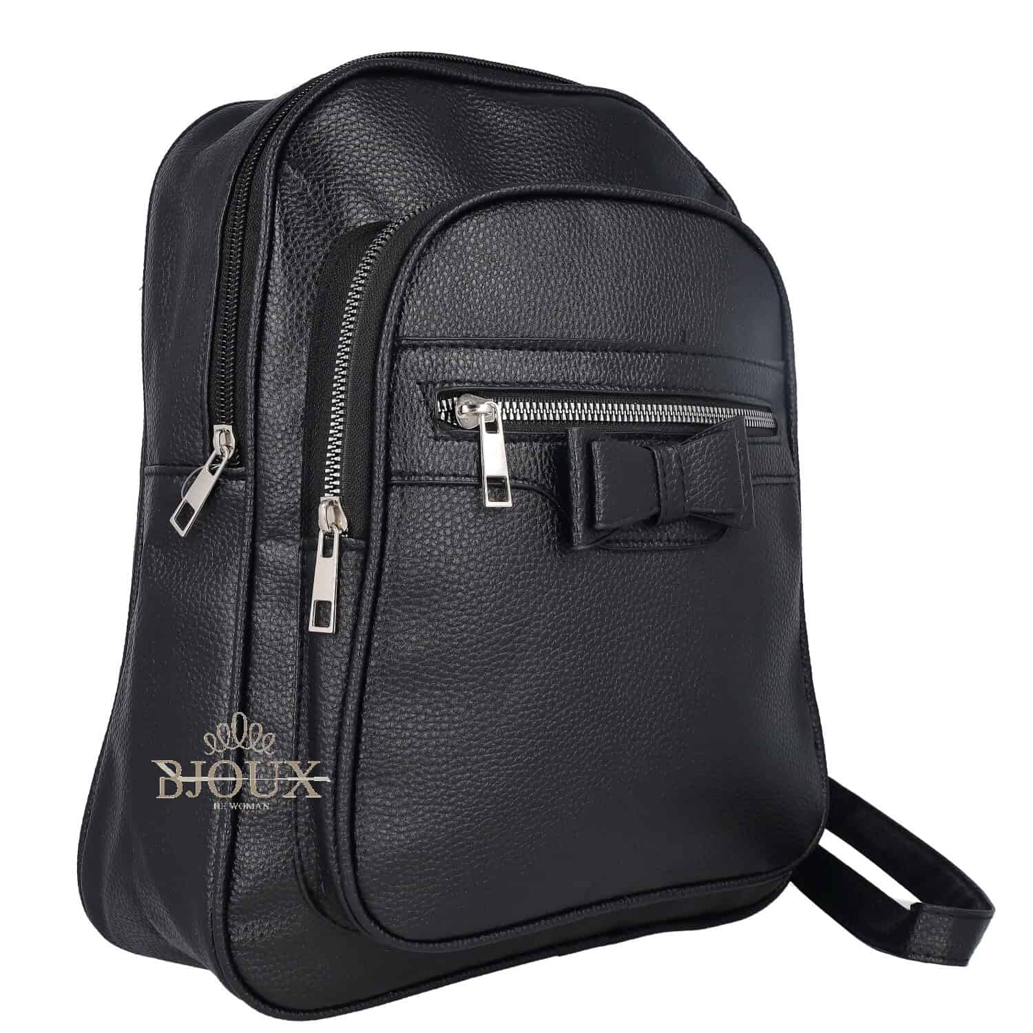 Zaino da donna in ecopelle colorata con 3 tasche, e fiocchetto tono su tono . Tracolle regolabili. Misure 30x26x16
